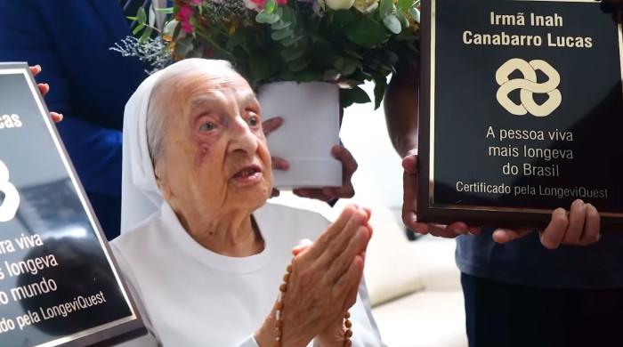 Brazilian nun Inah Canabarro Lucas. — Screengrab/ YouTube/ @LongeviQuest/ File After barely surviving infancy, Brazilian nun…