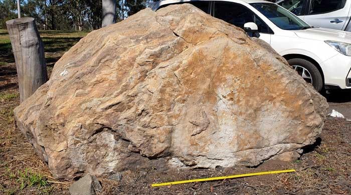 This undated handout photo released by the University of Queensland shows a boulder sitting outside a…
