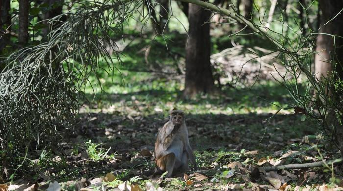 A monkey looks on at the forest, a day ahead of a wildlife census to count…